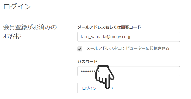 メールアドレス(もしくは会員番号)とパスワードを入力し、「2:ログイン」をクリックしてください。